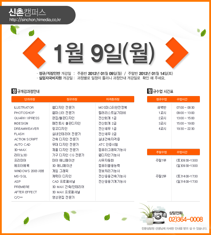 [정규개강] 2012년 01월 정규개강안내