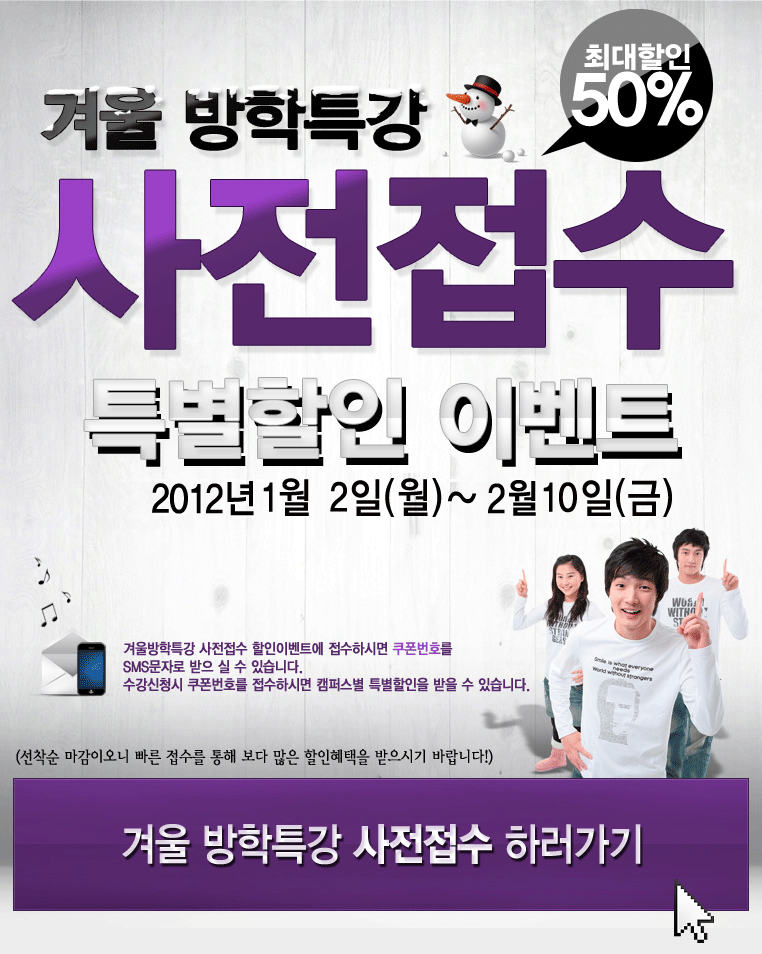 2012년 1월,2월 방학특강 이벤트 안내입니다.