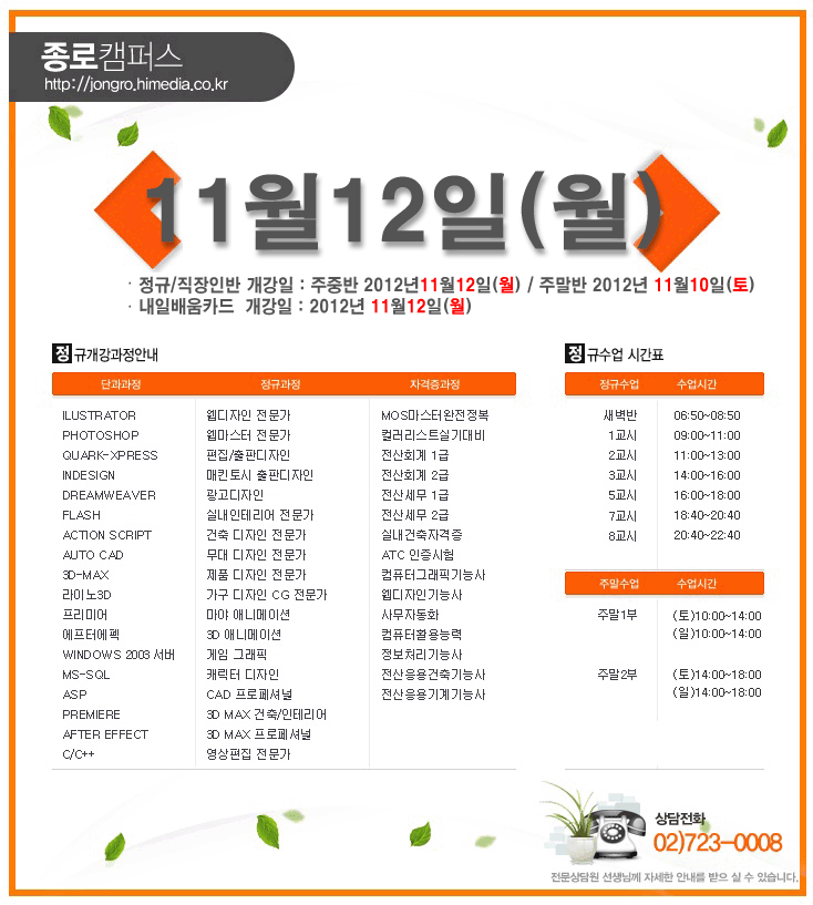 [정규개강] 2012년 11월 정규개강안내